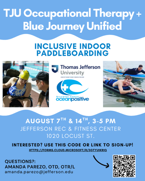 Jefferson University 1020 Locust Street, Philadelphia, PA, United StatesJoin Blue Journey Unified at Thomas Jefferson University for a free pool session for individuals with spinal cord injuries. Those interested in attending the event use this link to register - Join Us for Inclusive Paddleboarding!